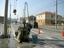 非開削で施工可能なマンホール耐震化工事「インナーウェイト工法」を施工いたします。